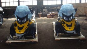 Снегоходы поступающие к нам как правило идут со снятыми лыжами, защитным стеклом и немного опущенным рулем. Все снегоходы только новые и поэтому требуют сервисного запуска. Данную услугу можем предложить мы за отдельную плату в размере 150$, либо если клиент знает технику, то установку снятых элементов производит самостоятельно.